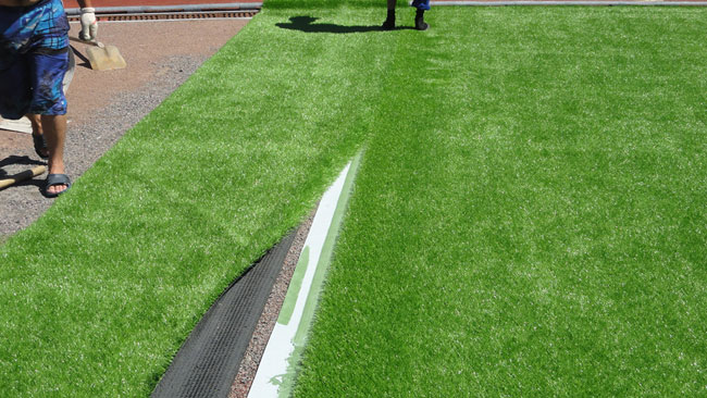 It is important to note that small pieces of turf are laid in the center. At the edges of the site it is better not to use them. Attempts to bend or turn coils will damage the coating.