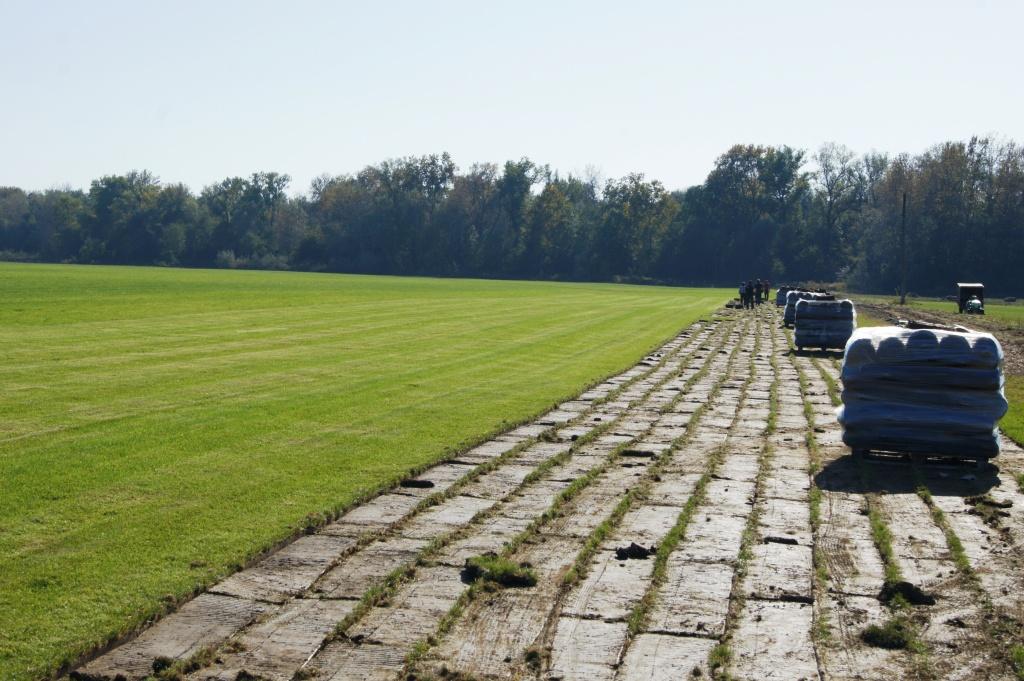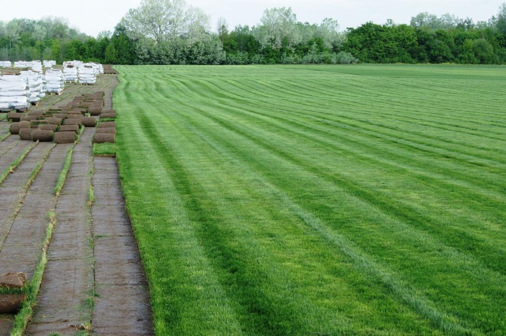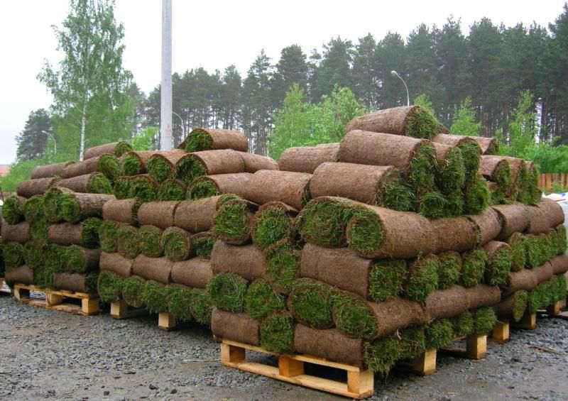 After plowing and disking, the soil is treated with herbicides. Chemicals destroy all plants at the site of the future lawn.The sown area has been watered and fertilized for several years, the grass is cut as needed. By the due date, the roots of plants are closely intertwined with each other, and the shoots form an even and dense coverage. It remains only to cut the sod into strips and roll them into rolls.