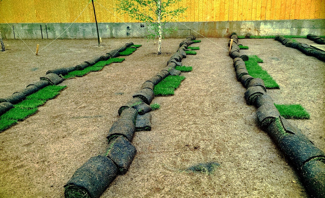 If the area of the site is very large and all the material could not be spread out in a day, it is necessary to roll out the remaining rolls, moisten the grass abundantly with water.You should protect them from the sun, as the sod in no case should not dry.
