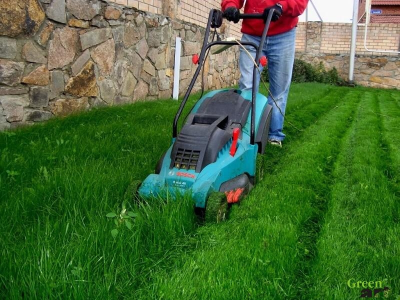 In the summer, they regularly mow the lawn, about once a week.. The first pruning takes place one week after transferring the turf rolls to a new location, and only the tops of the stems can be cut.If the plants are cut too short, they can die, and ugly bald spots are formed.