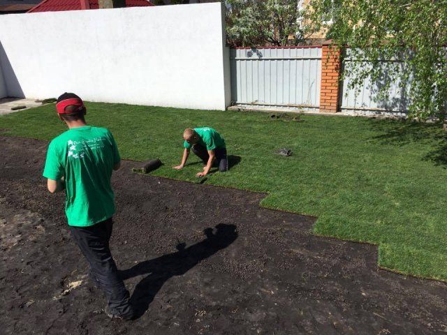 Laid lawn needs plenty of watering with sprinklers. In the first two weeks of his life in a new place, the drying of the root system of cereals should not be allowed. Constant humidity is the key to successful acclimatization. The edges of the rolls will require special attention, they should not dry out in any way.