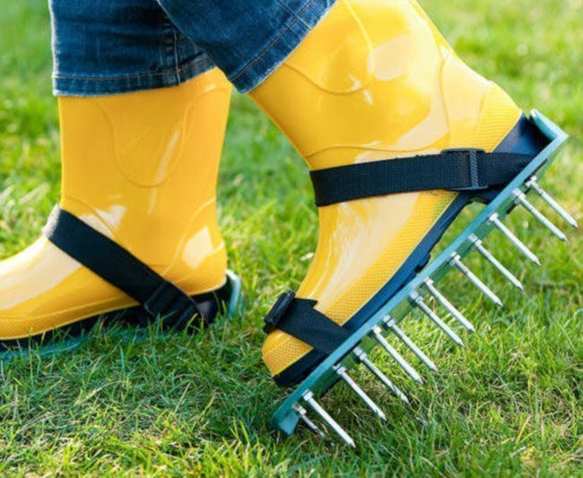 For aeration, purchase special hollow forks, aerator sandals, or a special aerator, mechanical or gasoline-powered.