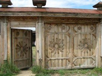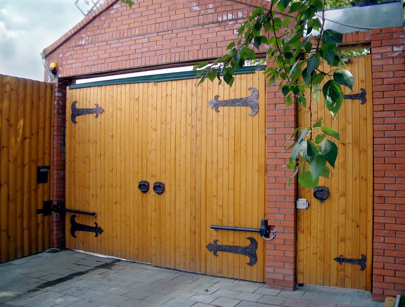 Note also that the bearing mechanism with automatic road rollers and capricious, with careless handling easily fails. It is possible to mount carved elements on any type of wooden gate both from above, and from below, and on the frontal plane.