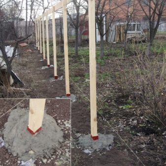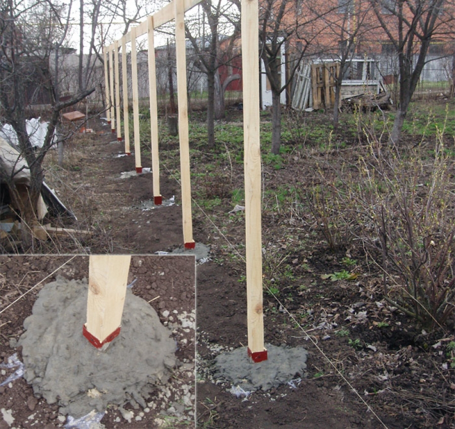 The territory must be prepared: they remove stones, break up lumps of earth and level it. It is desirable to mark the points of support and directions of installation with stakes, cords. It is almost impossible to do all the work alone, therefore assistants are always invited. It is possible to hang the sash only after the concrete is completely dry.