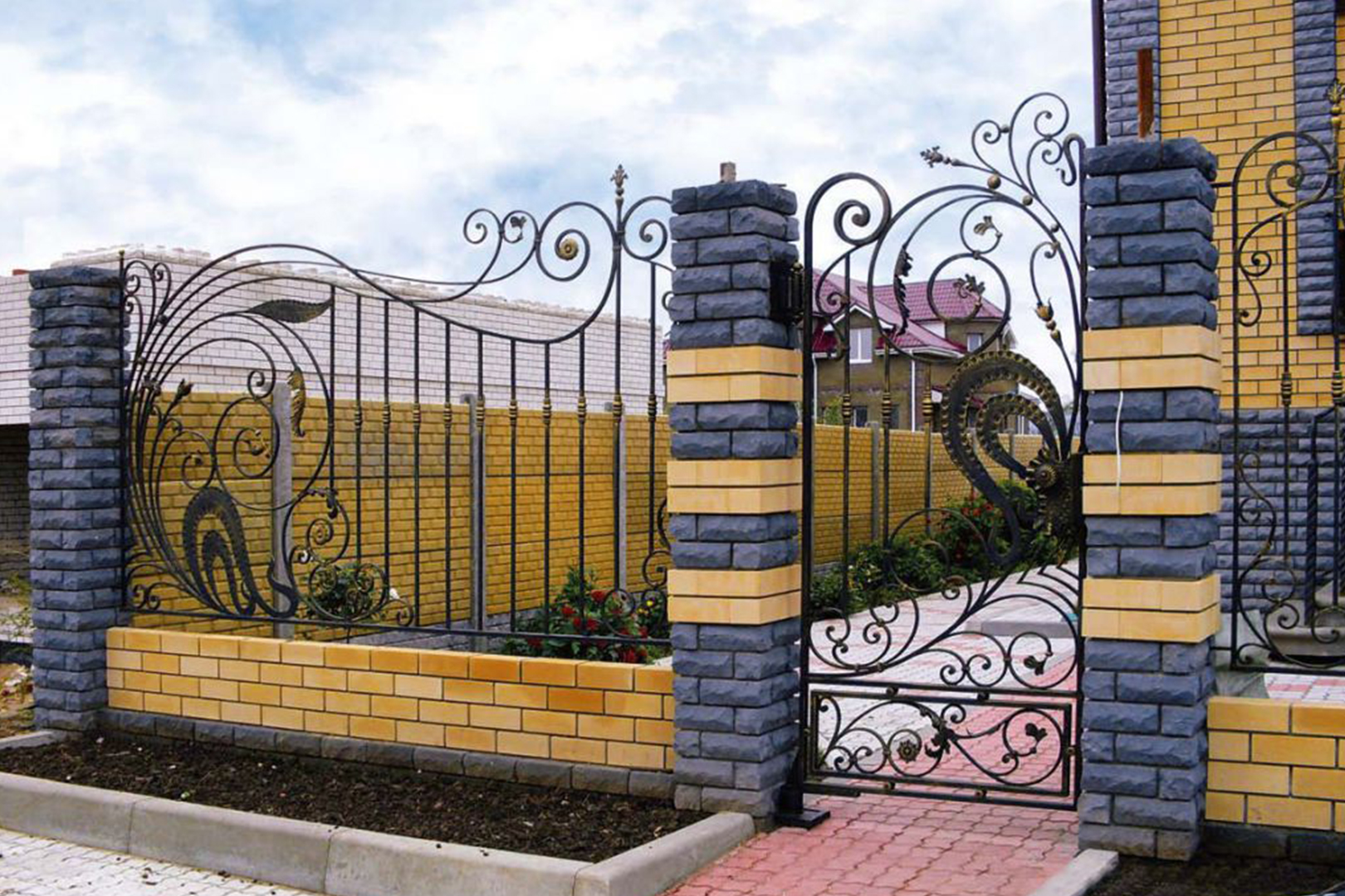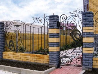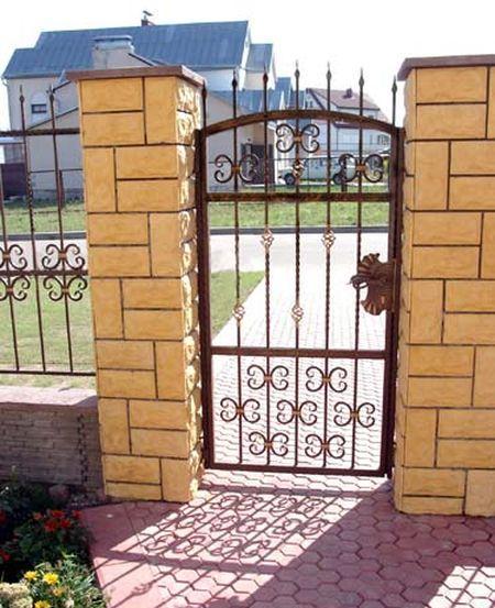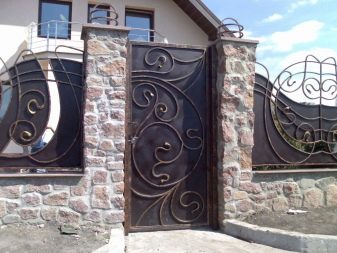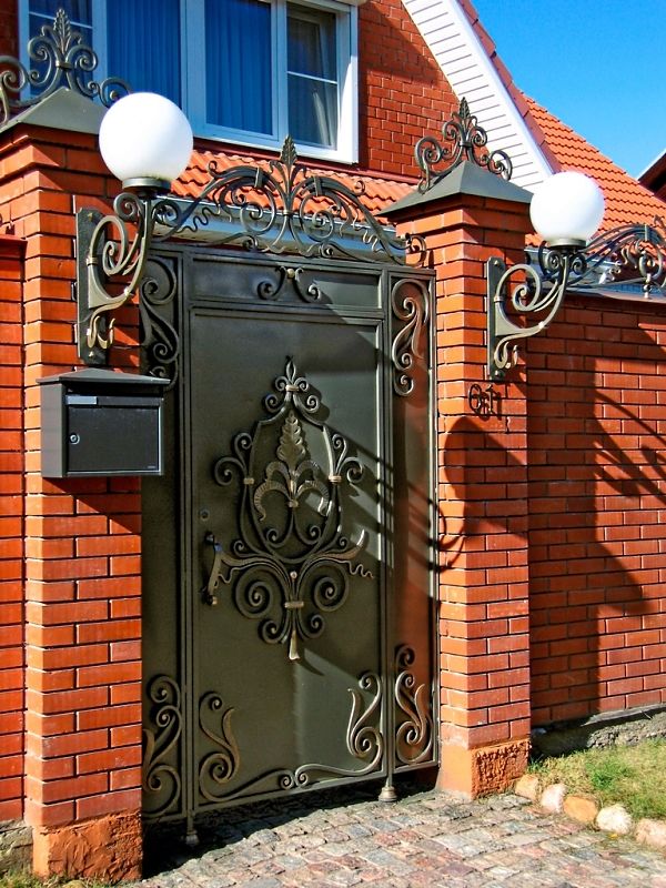 Stone and brick are wonderfully combined with metal. Metal gates look very good with these materials. Forged elements can also be attached to the stone base, and then it will be possible not to think over the design of the fence. It will look very harmonious, look like a single whole.