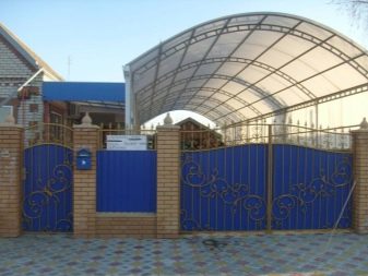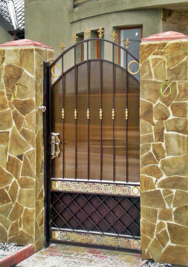 In everyday life, polycarbonate is just as unpretentious as the metal, but it will be easier to replace it with a new material if damaged or, for example, if you want to change the design of the gate.