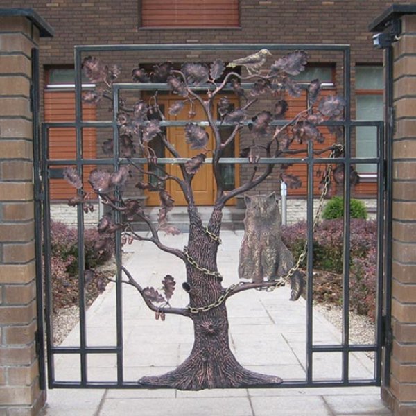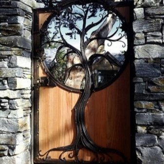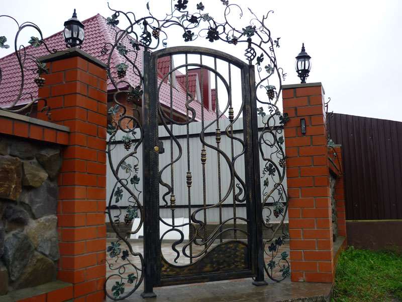 Talk about the environmental and natural material is not necessarybecause metal is the risk of corrosion on the surface or a characteristic smell on the hands, if you hold on to this gate for a long time. When you want the gate to “merge” with the surrounding nature,You should choose a tree (or at least a wooden base with forging and casting elements). It is very difficult to combine these two materials, only a professional with extensive experience will help here. It should also be borne in mind that metal and wood differ in wear resistance: it may happen that the wooden part of the fence will rot or burn before the forged elements are destroyed.