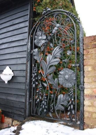 The main disadvantage of acquiring a wrought-iron entrance structure is the price, which will be significantly higher than the cost of an ordinary wooden fence or wicket from a picket fence, sheeting and other inexpensive materials. However, the result after the installation of a wrought-iron gate should exceed all expectations, because such products are characterized by a long service life and a unique design.