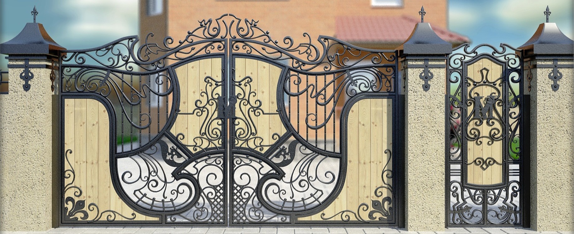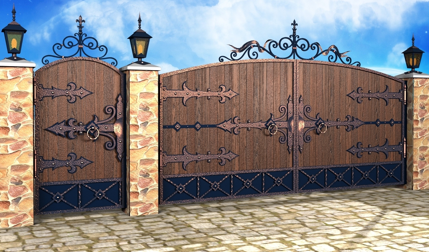 There are many types of forged gates, as well as combinations of forging with other materials. Unfortunately, there are no universal options for fencing, so it’s worth deciding whether you want to see the surrounding landscapes through the grid or separate yourself from the surrounding areas and enjoy the privacy. It should also be clearly understood how much the family is willing to spend on decorating the entrance. Focusing on the amount, you will need to choose the material for the gate and the type of pattern.