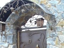 Another interesting design decision in the design of the gate is the installation of the arch. It can be decorated with different elements. In addition, this design is able to cover the fence from rain, snow. The main requirement of the overall decor should be the unity of the style of the gate, gate and fence. But this does not mean that there should be a single pattern in all its details.