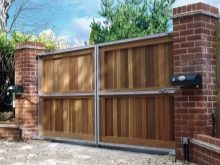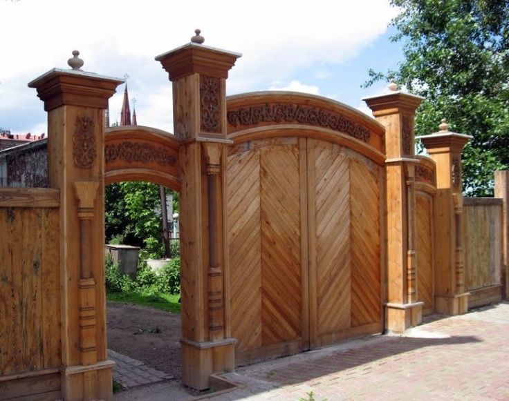 The decoration used a combination of the gate with the gate. If it is impossible to install two such elements at the same time, then only one enclosing structure is used that performs a double function. Classics lovers are advised to protect the area with wooden elements.which will be in harmony with the supports of stone or brick. The gate can be designed in such a way that it will resemble ancient motifs. To do this, forged elements are added to the tree.