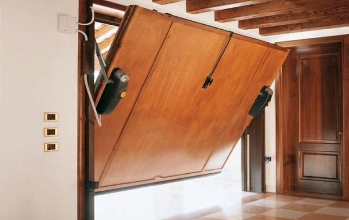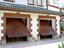 This type of gate is appropriate for use in the summer cottage garage. The device is fixed in such a way that the flaps open and close easily by lifting and repositioning. They are mostly made of metal, but they can also have a wooden coating. By its size these gates are compact enough.