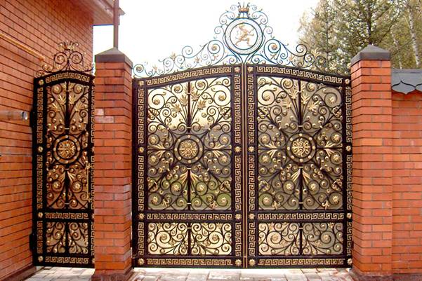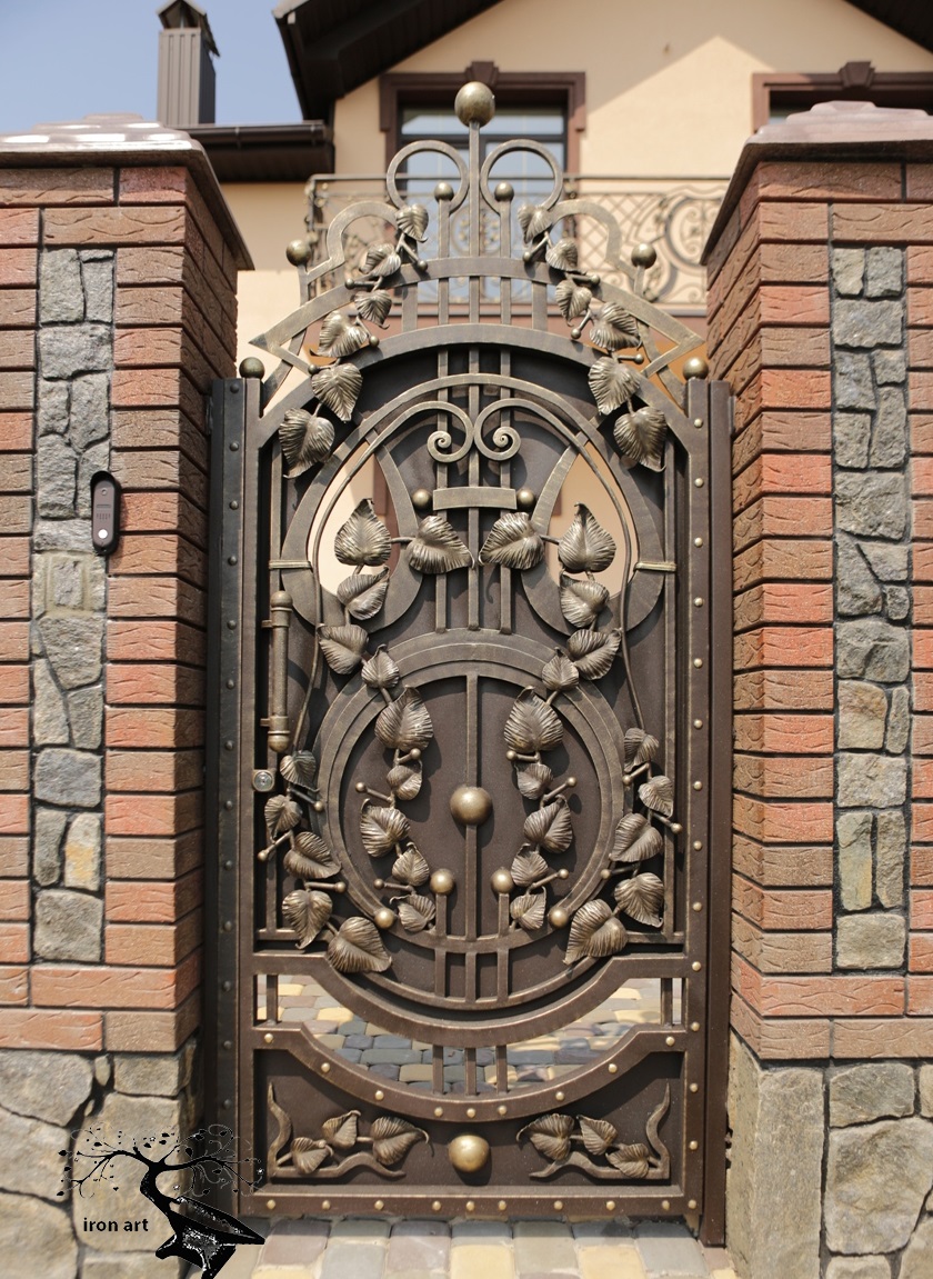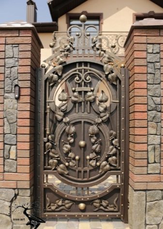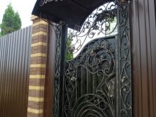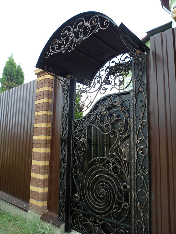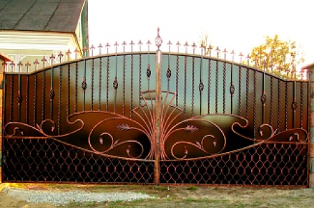 You can select the gate with forged items. To give greater elegance using the minimum amount of decor. Before you design the fence, you need to create a template for the future product. If the sketch turned out what was intended, then you should start welding large parts, and then fix the small ones. As a decor, the addition of live plants is allowed. This design will stand out among the gates of your neighbors.