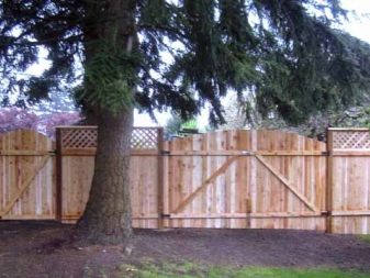 - Mixed types include elements of solid fence and lattice. It is possible to harmoniously combine them by fixing the carved edging at the bottom of the canvas. This will provide a place for pets to pass through.