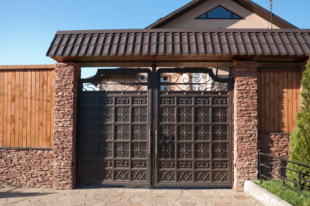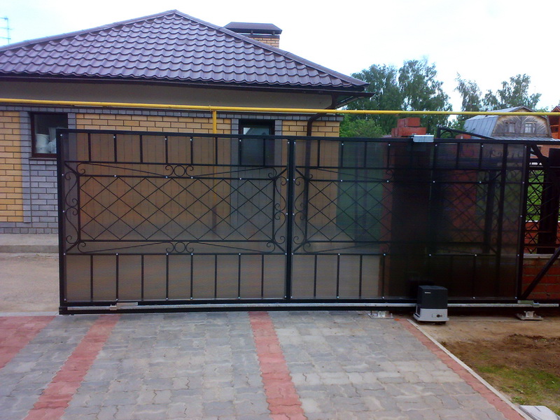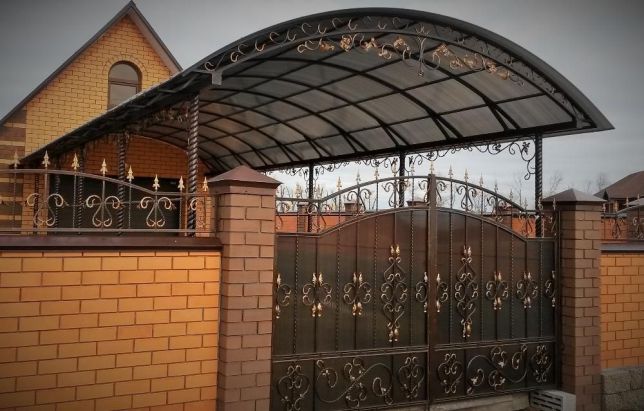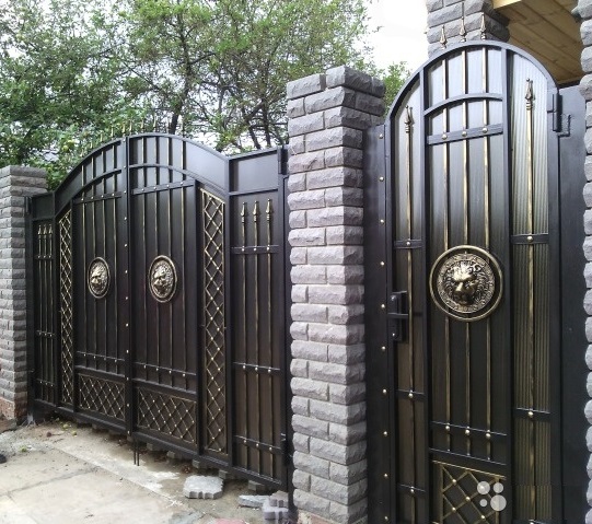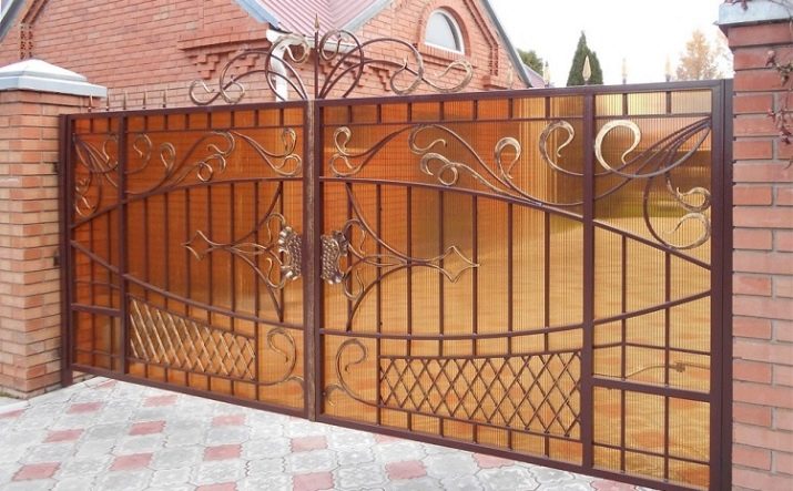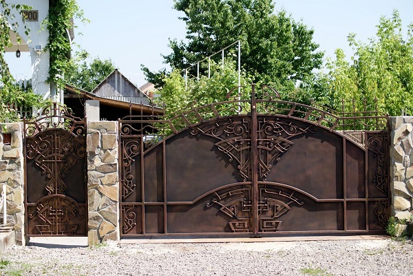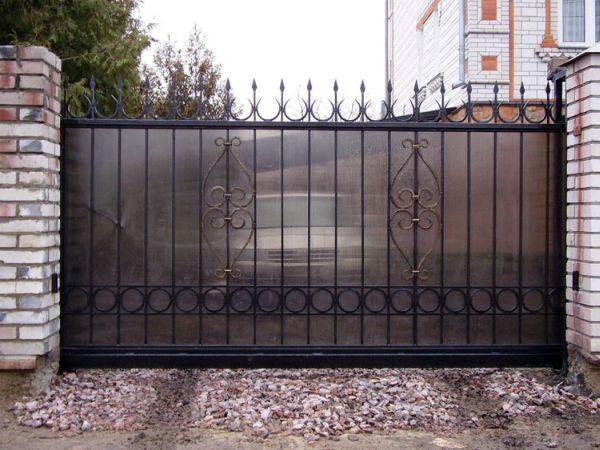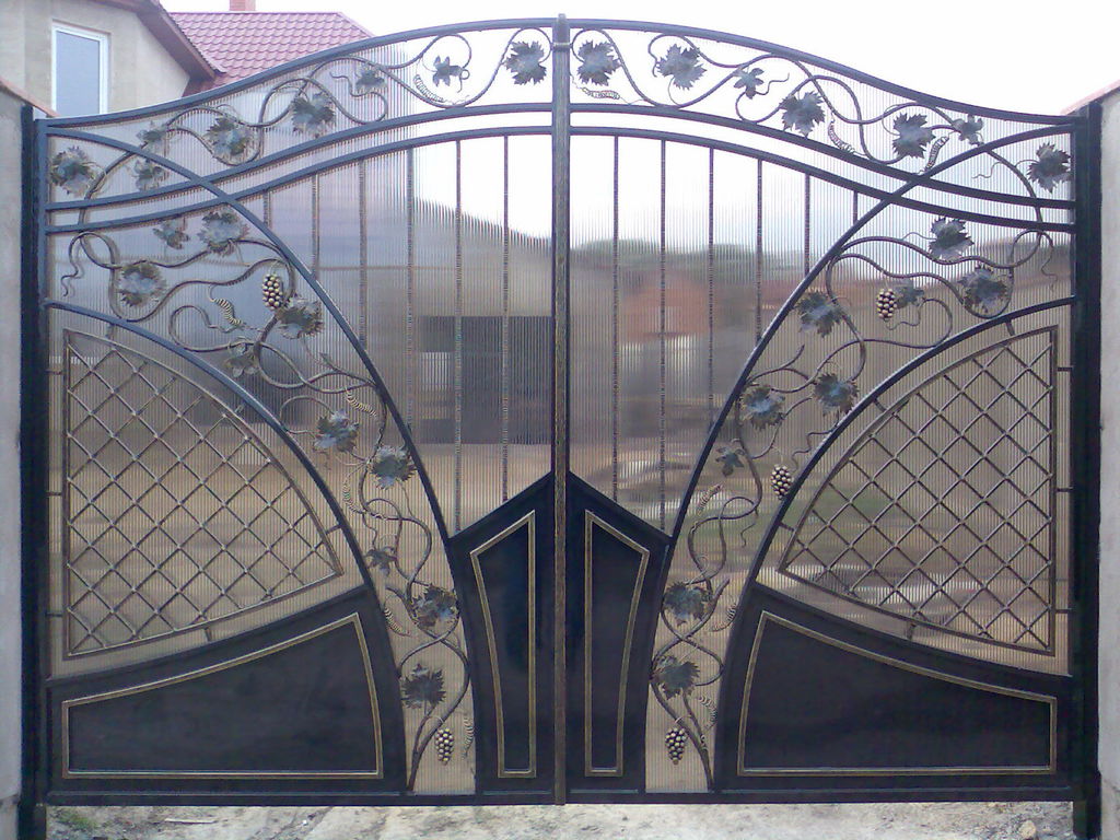 Openwork gates will not leave anyone indifferent. They always look sophisticated, expensive. For greater convenience, you can fix the sheets of polycarbonate from the inside of the suburban area. The appearance of the product looks like a work of art. This is a combination of style, reliability and durability. The patterned ornament expresses the individuality of the landscape.