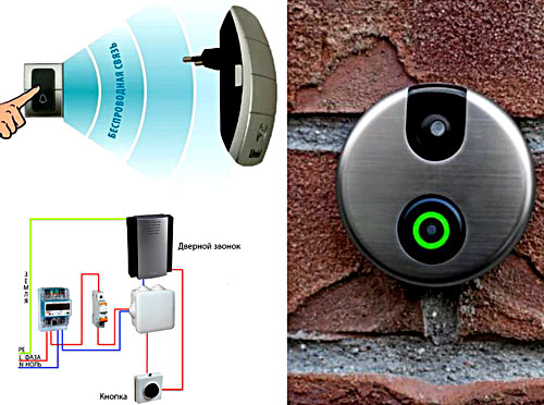 There are such sets in which there are two calls. One is used for mounting on the gate, and the other is mounted on the door of the house.Radio calls can operate from batteries or from a receiver. The distance between the bell and the signal source should be about one hundred meters.. The base can be installed in a house on a wall, the unit of which works by connecting to a wall outlet or on a battery.