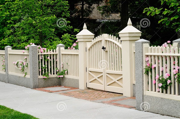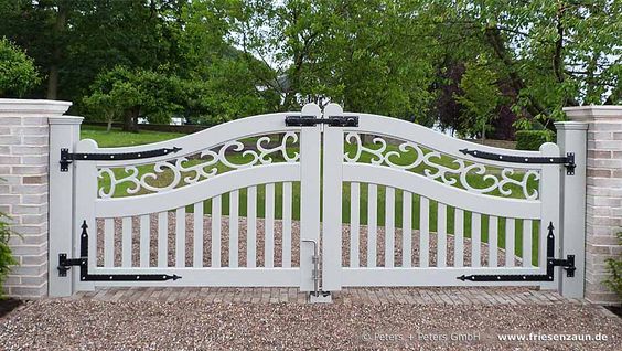 White gates of small size will always attract attention. This option will give the design lightness and airiness. Despite the catchy color, fencing blends harmoniously with the overall exterior of the site.This texture will make to attract the attention of neighbors and people passing by. The white construction can afford wealthy people with refined taste.