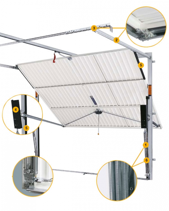 Folding dimensional doors are a convenient way to arrange the entrance to the garage. They do not cause difficulties in installation and use. The high cost is justified by good protection against burglary, stability of the whole complex of the structure.Possess big tightness and thermal insulation. In the open position of the gate device is above the ground, his work is provided by the action of the drive. The canvas incorporates aluminum and steel, and between them polyurethane foam is laid. Facing is carried out from sheets of a professional flooring.