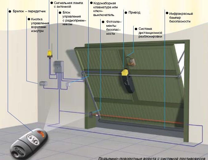 Warming is carried out using a rubber seal. On both sides of the canvas are fixed the wheels and levers, raising the gate. If the installation of an electric drive is planned, then this work is done last. The electrical system is quite convenient and allows you to open the gate with a button that operates at a certain distance.
