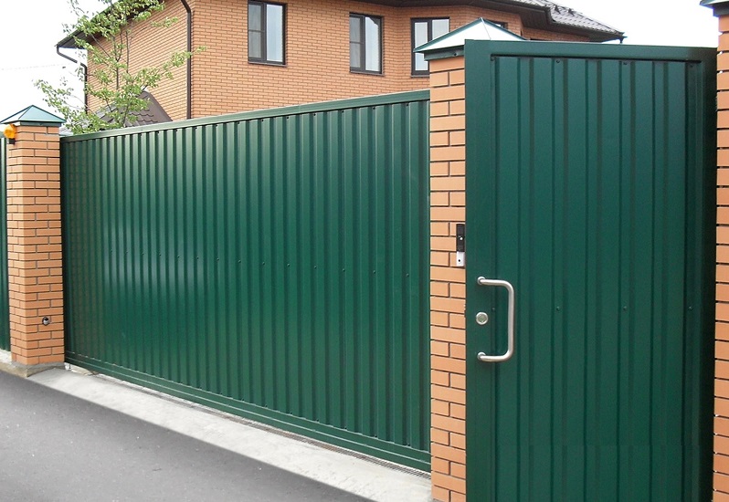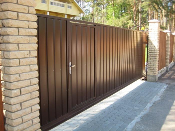 If the gate is made of metal, then a built-in gate made of the same material will be a necessary addition.. Integral composition with fencing looks neat and does not require the allocation of additional space. This mechanism is best suited for swing type fencing.