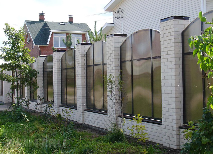 Now it has become popular to put various statuettes on the pillars, but the installation of lanterns will become a more practical option. It is worth remembering that with an open fence the landscape of the territory of the house should be perfect.