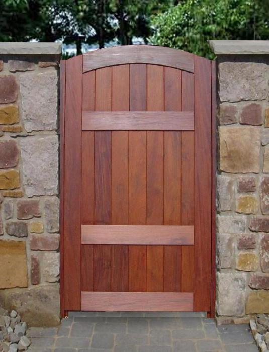 Wooden gate plays the role of not only the entrance to the territory, but also serves as a means of zoning. The best tree for this is considered to be oak, larch, cedar. All materials are treated with a protective solution so that the gate can perform its function for a long time without reconstruction or replacement. The product, in which the boards are not tightly packed together, allows sunlight to penetrate the area, transparency adds volume and visually expands the space. Such an element of decor perfectly fit into the overall landscape.