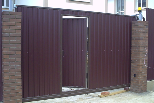 One of the interesting systems of the wicket device is its installation directly into the design of the gate. It can even be in the center of the entire system, which can be made using profiled sheeting. Step-by-step actions of such installation: