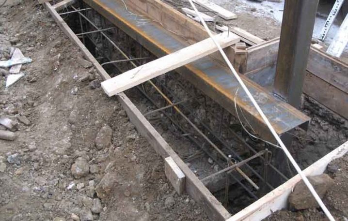 Such a foundation may include several piers or pits, the depth of which should not exceed two meters. The deepening, as well as in the swing version, is filled with sand and rubble. Further the timbering in which the waterproofing is put keeps within. Reinforcement mesh is also needed, after which the whole system is concreted. A profile is fixed on the finished coating, the shelves of which should be turned towards the concrete.
