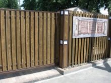 - Vertical. In this design, the fence all the boards are placed vertically. The simplest and most common of them is a classic picket fence. If it is varnished or painted with dark brown paint, it will not only ennoble it, but also protect it from the weather. It will also look great vertical weaving of boards, and if even in addition to combine it with a picket fence, you get a very beautiful design. An excellent addition to it will be gates made in baroque style.
