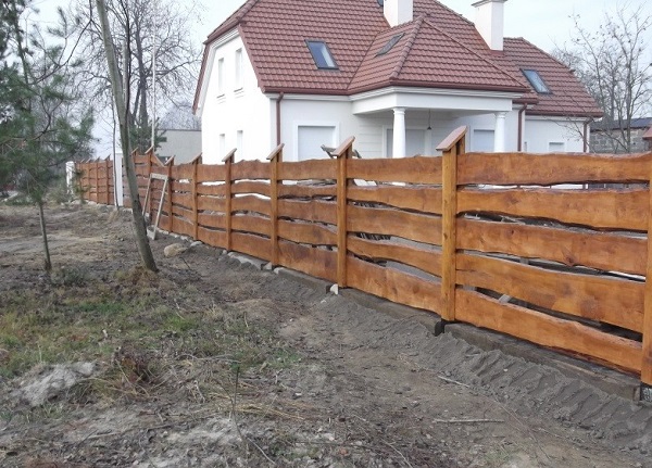 If it is slightly ennoble, remove the bark, polished, and varnish, you get a very beautiful fence. But if this is not done, then it is suitable only for fencing of cattle sheds. Such a fence will look great with wooden buildings.