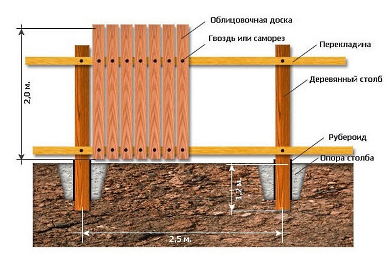 If this is not done, the tree will simply rot. The third part of the post is buried in the ground and is poured with concrete so that the support can support the weight of the fence.