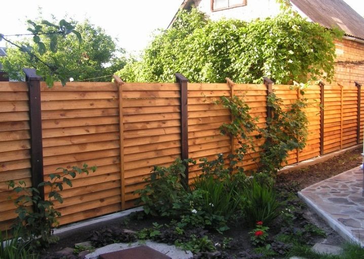 The fence of wooden boards has many advantages over other materials. It will not only protect the territory from the curious glances of its neighbors, but also will last for more than twenty years with proper care. In this case, such a fence will be cheaper than a brick or stone. It is made of wood, which is not only an environmentally friendly option, but also aesthetically beautiful.