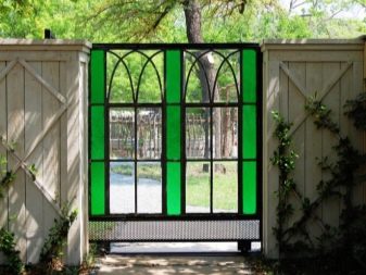 These wickets are among the most popular. Especially harmoniously, they look in tandem with a fence made of wooden fence. In addition, such a detail can be safely combined with materials such as stone (artificial or decorative) or brick.