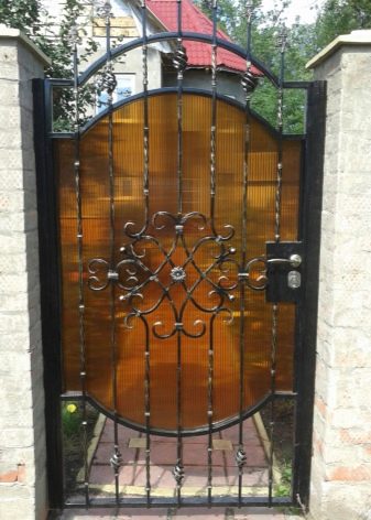 - Combined. No less attractive are the blind gates, complemented by openwork elements. Most often there are canvases in which there is an open top and a deaf bottom. Such a structure makes the gate easier and not bulky.