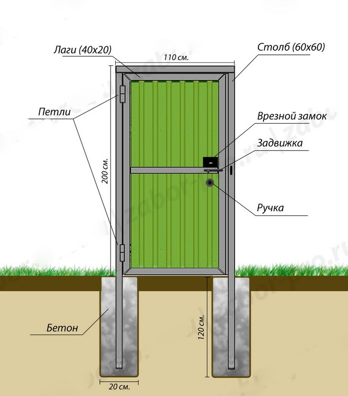 The gate can be made by hand. To do this, you must stock up with the necessary tools, materials and, of course, patience. One of the most difficult stages in the installation of these structures is the installation of wicket and fence pillars of the exact size, since at the time of their manufacture the gate and wicket frame must be ready and cannot be changed.