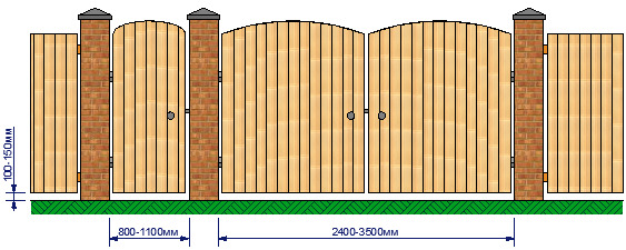 Based on standardsthe width of the wicket should be not less than 800 mm (standard)and as for the gate, their dimensions largely depend on the size of the vehicle and the radius of its turn.