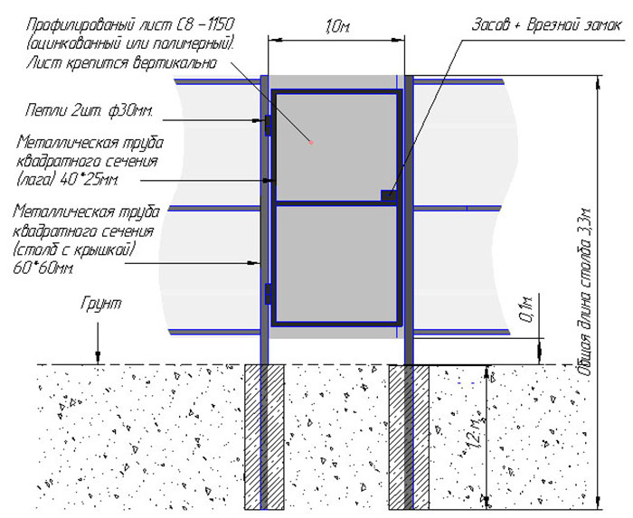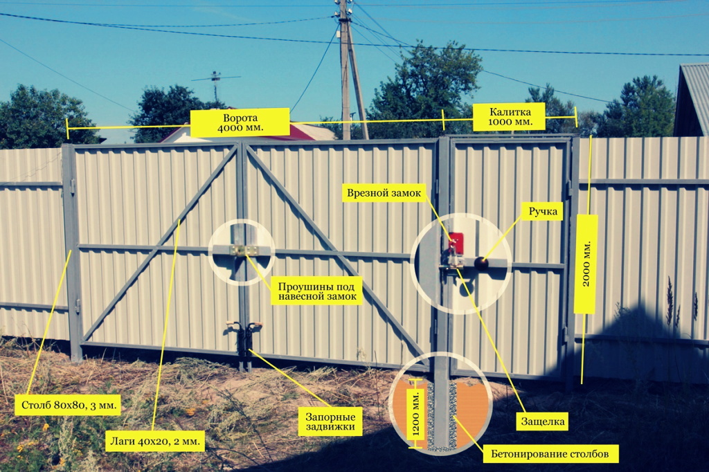 Installation of the gate from different materials can be made independently. For example, Install a beautiful model of reliable metal profile is necessary as follows: