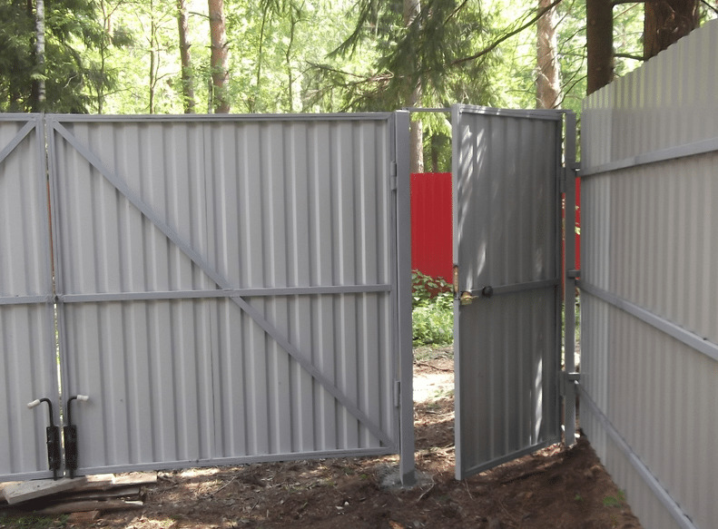 - Easy installation. Installing corrugated flooring is an easy task. This material is lightweight. It is easily attached with screws. You spend more time on the manufacture of the frame than on the direct installation of the gate itself.