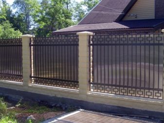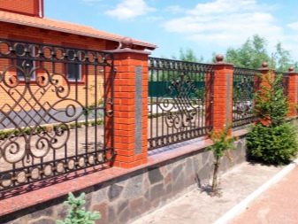The combined type of fencing is used most often. Such work is easier to perform than in the previous version, since a standard template is used here. Terms of their manufacture are significantly reduced, this leads to cheaper products. For work use a collar, rivets, apply welding and twisting.