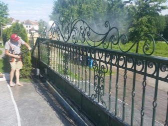 Beautiful wrought iron gates, fences and other décor require some care. Painting will help protect the metal from corrosion and will allow you to get a new exterior decoration. It is possible to put a patina over the paint. Two types of paints are used to coat forged products: liquid or powder.
