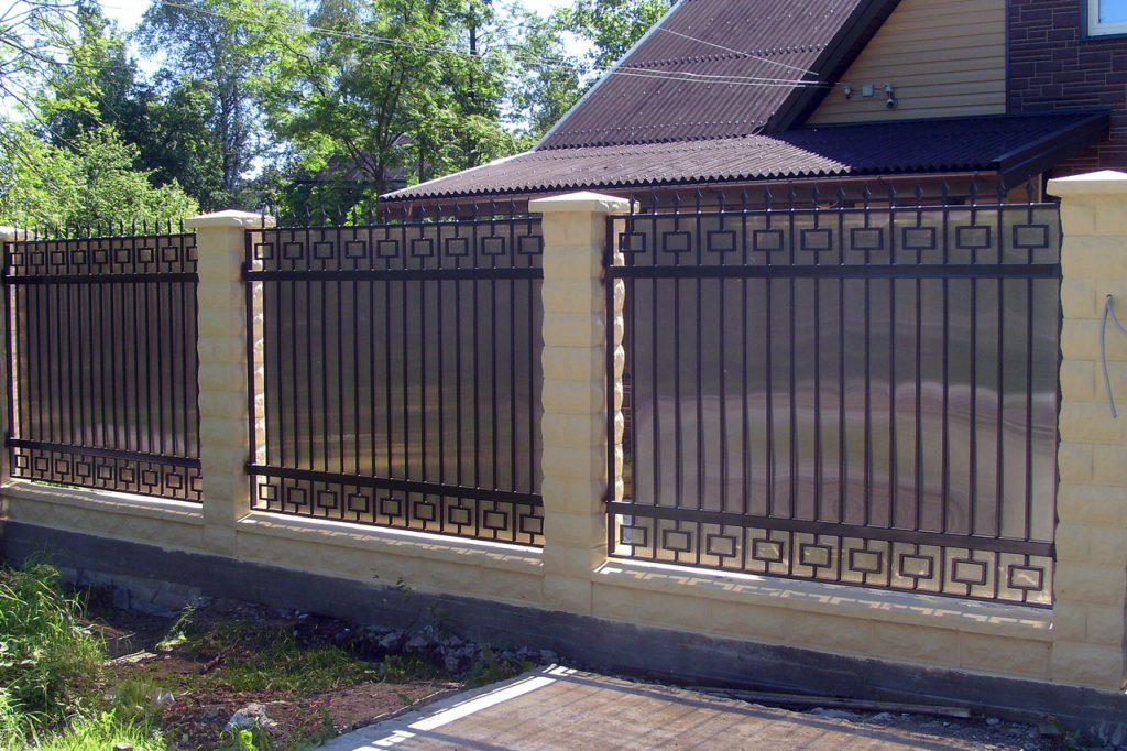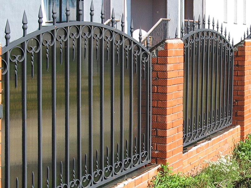 - forged fences with polycarbonate for a long time retain a decent appearance, do not corrode;