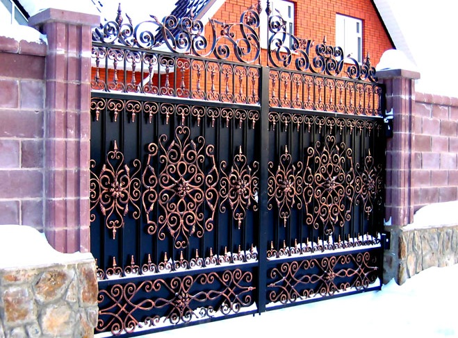 If your choice fell on a wrought-iron gate, you need to understand that it is not only a decor item, but also the protection of your manor. When choosing materials, pay attention to important elements of engineering design. The profile pipe is usually used as fittings. They are made of very durable steel, they have an increased resistance to deformation, are not exposed to weather conditions.