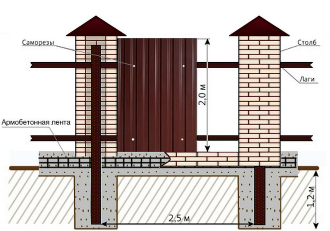 To put a reliable fence, it is necessary to mount the foundation with brick pillars. The foundation can be of two types: tape and columnar.