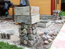 The depth of the pits for such supports should be about 80 cm in the event that the height of the column exceeds 2 m with the extension below. This expansion is made for the sake of its further pouring with concrete. The walls of the pit are covered with roofing material in the form of a tube. Its upper part should protrude 15 cm above the ground surface. A wooden formwork is placed around this elevated part of the ruberoid tube.