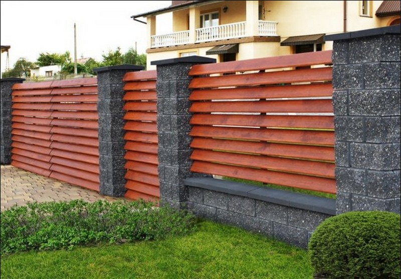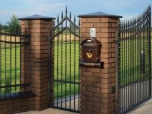 The advantage of supporting pillars of building or facing bricks, natural or artificial stone is their aesthetics, capital and resistance to any loads, and the disadvantage is the complexity of construction, which does not do without the help of an experienced builder, as well as the high cost of the material. The durability of the fence with brick or stone pillars depends on the correctness of the laying.