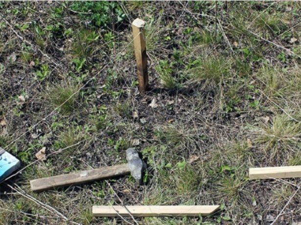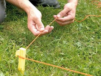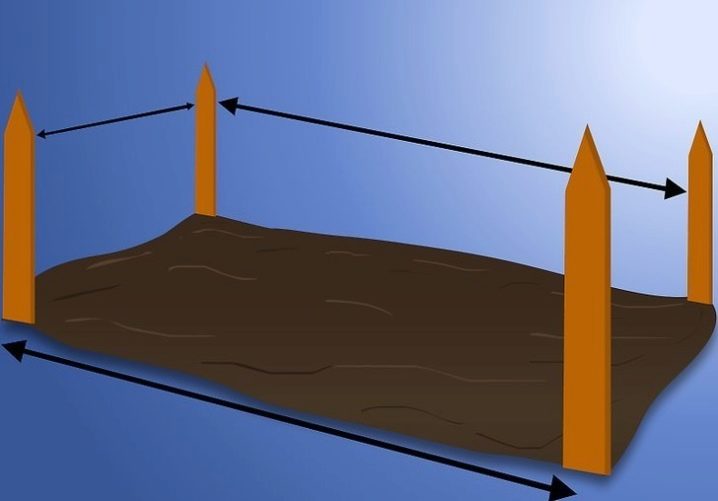 Planning and marking the territory of the site under the pole supports should begin with the definition of its corner points, which are marked by clogging stakes in them. Between these pegs, the cord is then pulled. Each such peg should in this case be placed clearly against the next. At the corners of the perimeter, it is necessary to put pillars of a greater thickness in order to withstand high loads.