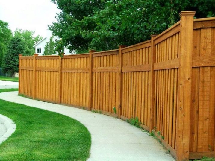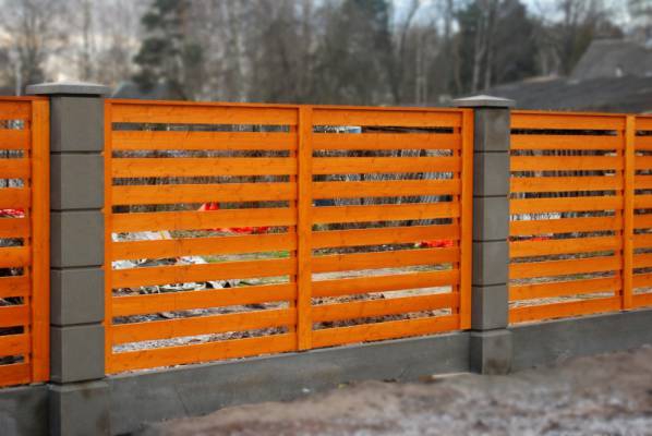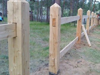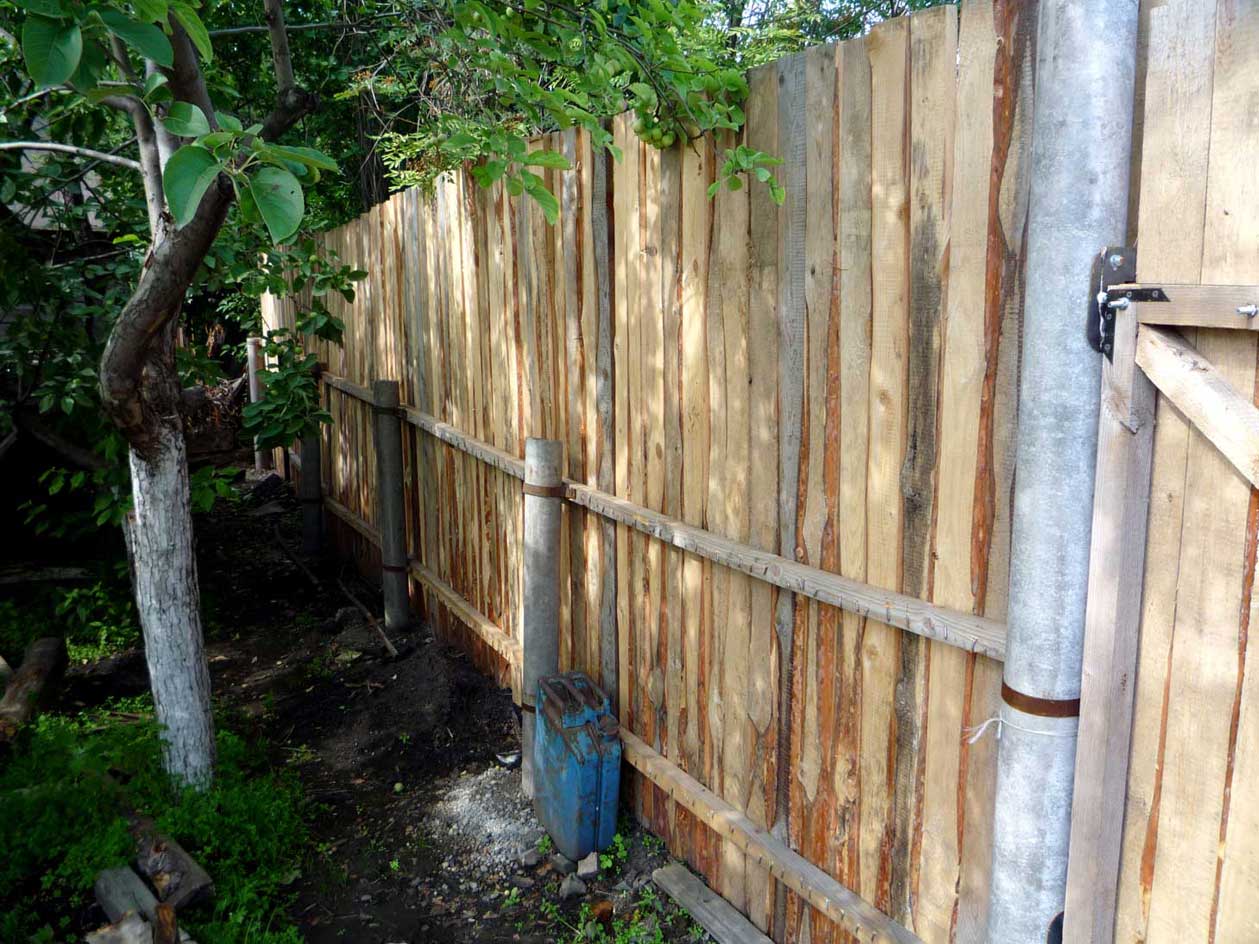The construction of wooden fences from slabs or unedged boards with an abundance of other materials in our time is, rather, the old fashioned way. For such fences can be used pillars of timber or logs of pine, oak or shares. In addition to them, supports of larch and mulberry can be used. These tree species are most resistant to adverse external factors such as moisture, temperature extremes and mold fungus. This also includes coniferous wood of spruce and fir.