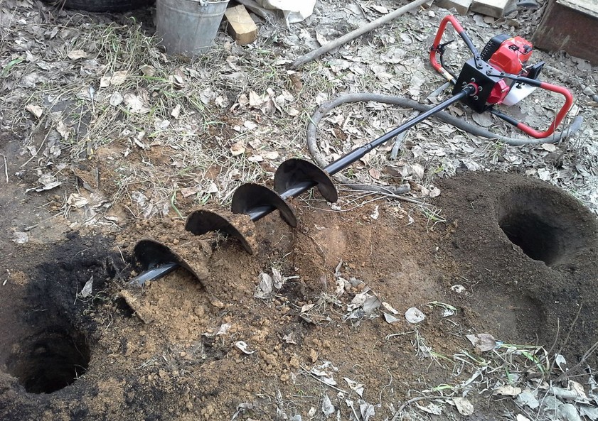 Then, without removing the cords, at the points outlined in this way, they drill holes to a depth of 1 m.