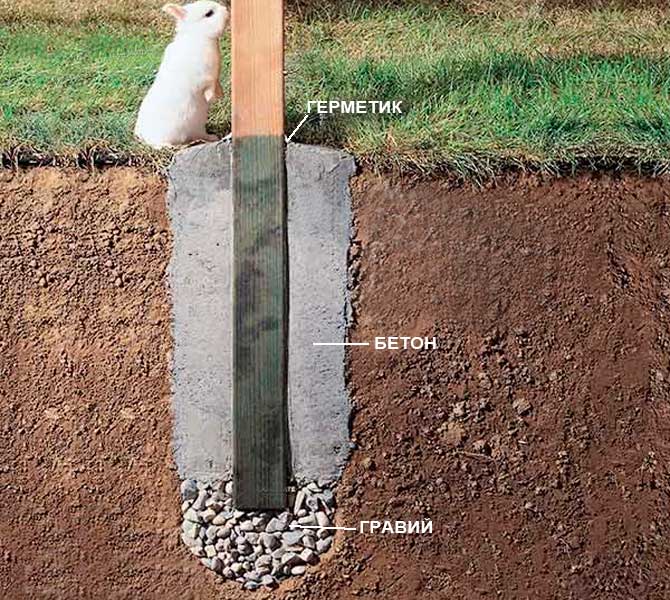 There is also a less labor-intensive method, similar to the installation of a steel profile, when the pillars are buried in the soil and poured with concrete, but its implementation is permissible only for sandy types of soil.