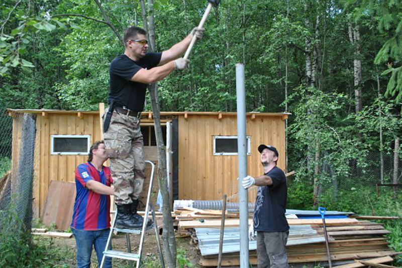 Hammering a pole with a sledgehammer is a simpler method, requiring, however, considerable physical effort. The support with the purpose of its more dense fixation in the ground should be driven into the hole with a smaller diameter than the column itself. This method is suitable for light type fences and can only be used on heavy, dense or rocky soils.